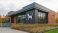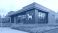 • Modern veterinary hospital building exterior with dog sign and landscaping