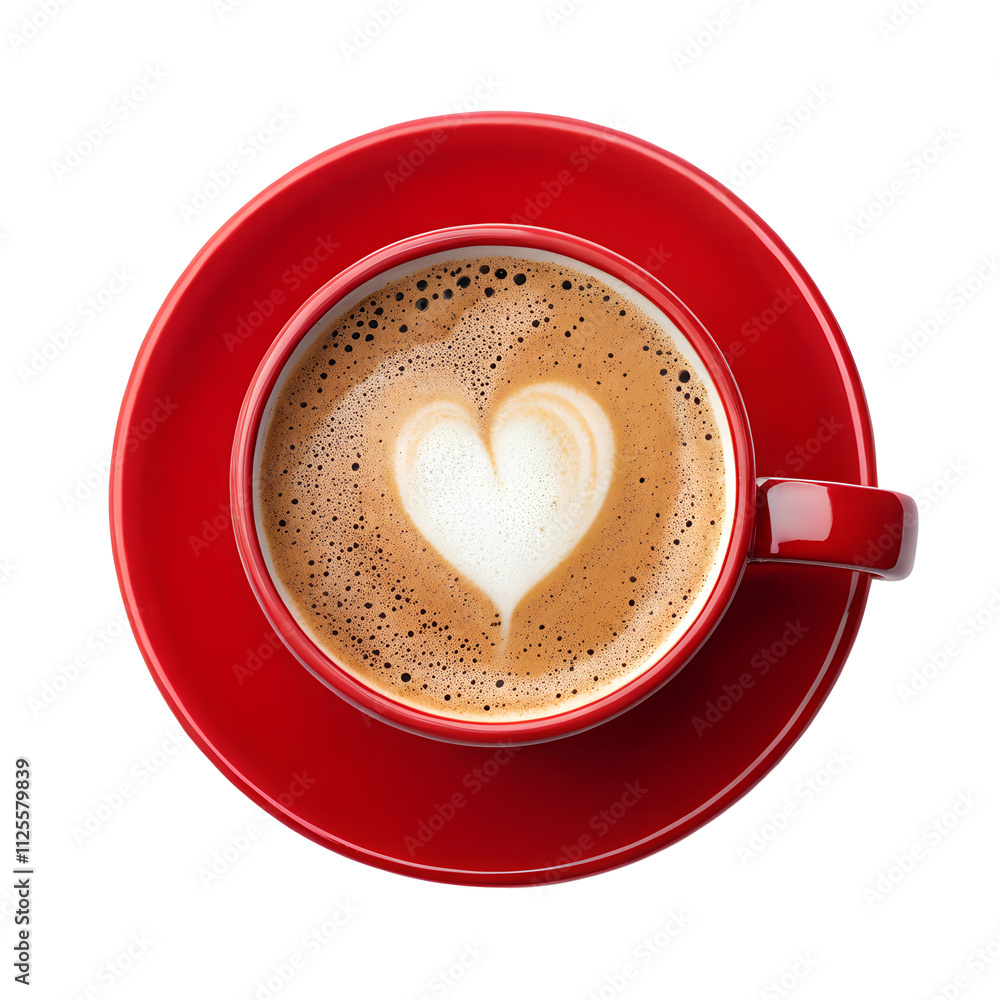 • Top view red coffee cup foam hear shape isolated relax transparent romantic PNG file download
