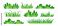 • Cartoon grass bush, tuft leaf and plant, meadow and park, green lawn, outdoor garden or forest tree icon isolated on white bg. Simple nature border. Cute foliage doodle fence set. Vector illustration