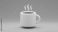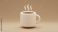 • Cozy and minimalist 3D illustration of a steaming hot coffee mug on a simple, neutral beige background