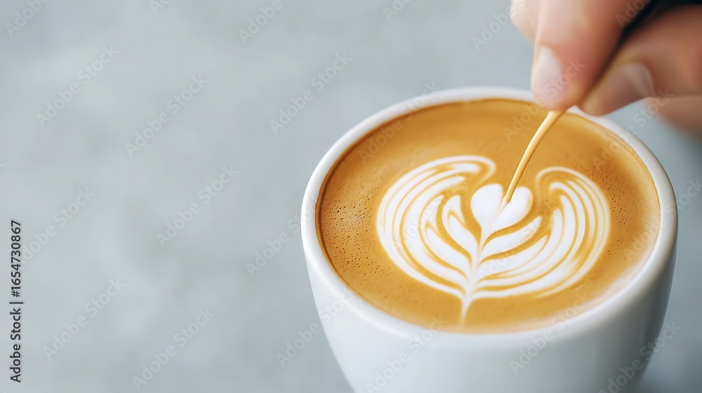 Fototapeta do Kuchni - Barista creates latte art heart design in coffee #1654730867