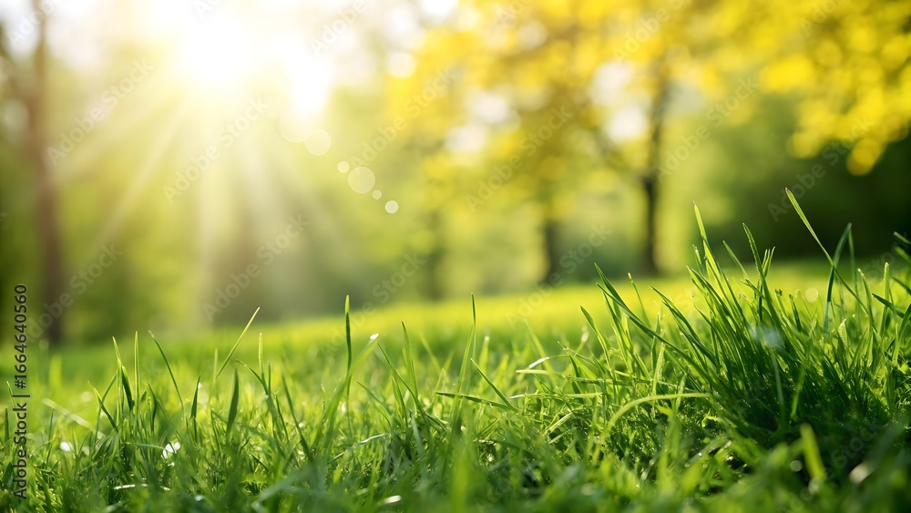 Fototapeta do Kuchni - Sunlight shining on a green grass field in summer #1664640560