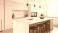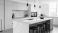 • Modern Kitchen Island with White Marble Countertop and Stools