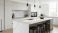 Fototapeta do Kuchni - Modern Kitchen Island with White Marble Countertop and Stools #1840885749