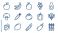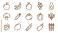 • Healthy fruits and vegetables line icons. Minimalistic outline symbols. Fresh organic food collection. Nutrition diet concept. Vegan ingredients. Farm market elements. Simple stroke.