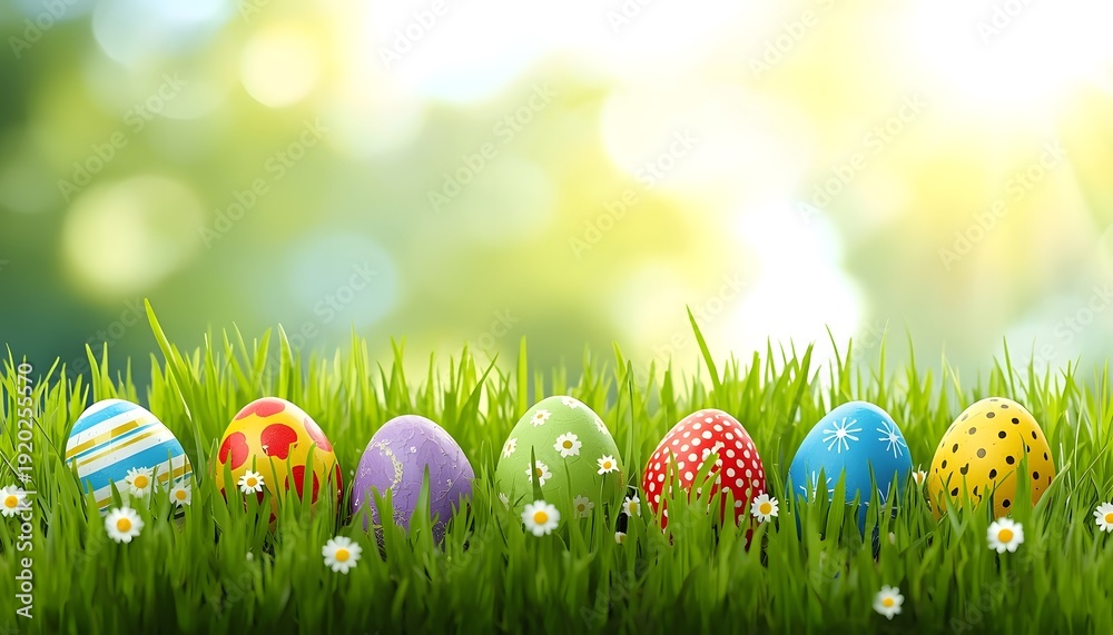 Fototapeta do Kuchni - Colorful easter eggs in the grass #1920255570