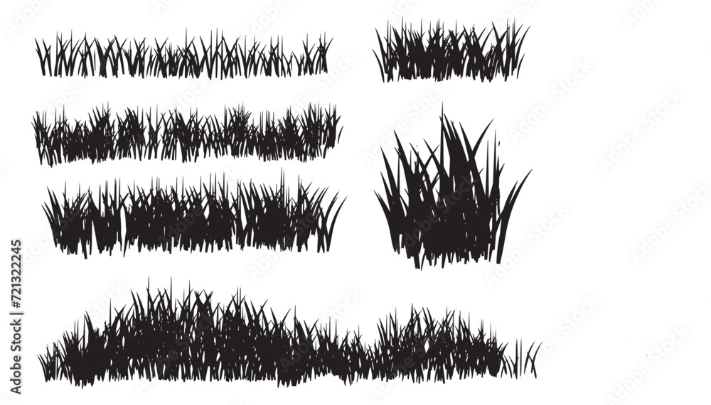 • Collection of random hand drawn scribble of grass, shape, grass shapes vector set