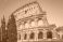 • Rome, Italy - External walls of the ancient roman Colosseum - Colosseo - known also as Flavian amphitheater - Anfiteatro Flavio - in an evening light