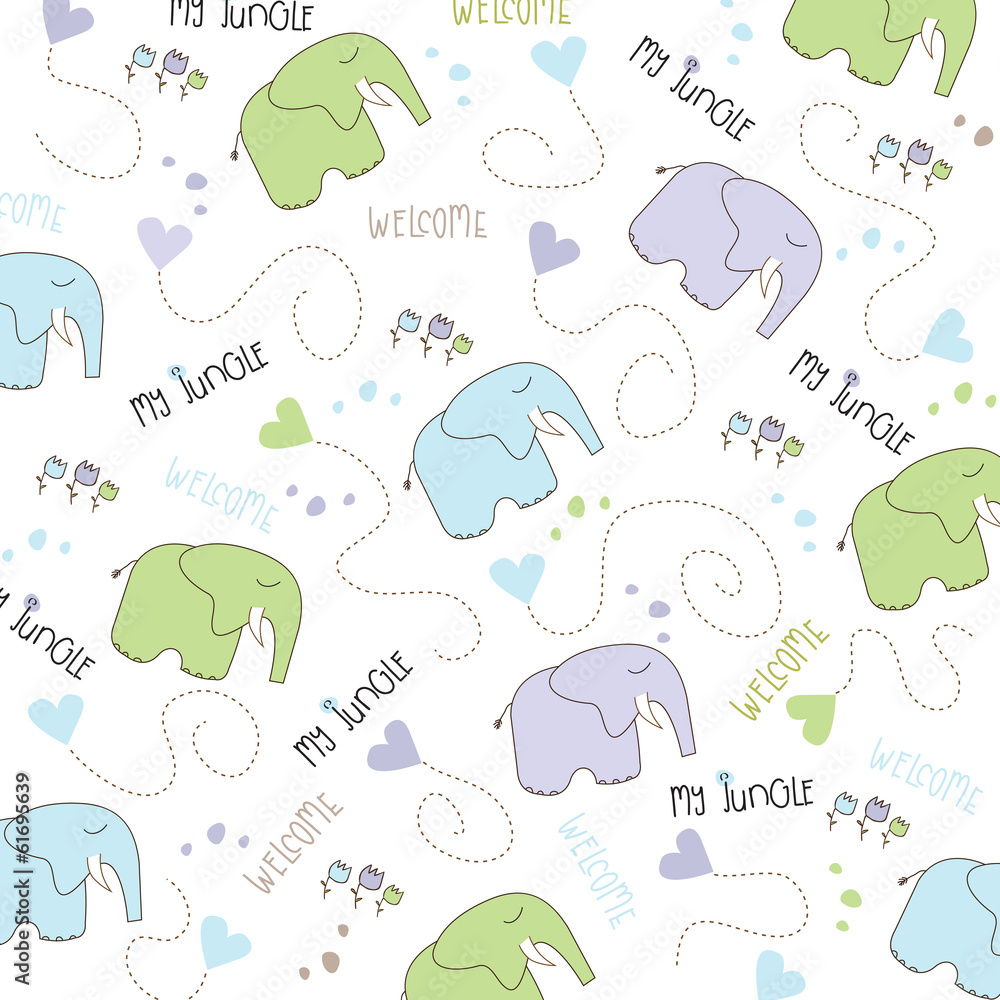 Fototapeta do Pokoju Chłopczyka - Seamless baby elephant pattern #61695639