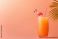 Fototapeta do Restauracji - Refreshing drink adorned with a quirky flamingo stirrer against a vibrant coral background #1260966609