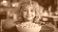 • Young child with curly hair smiles behind a bowl of macaroni and cheese.