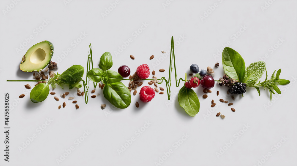 Fototapeta do Restauracji - Healthy lifestyle heartbeat made of superfoods #1475658025