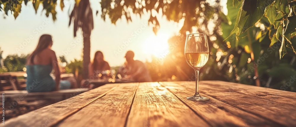Fototapeta do Restauracji - Friends are celebrating with a BBQ at sunset, sharing joy and laughter while enjoying wine in a... #1491830373