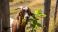 Fototapeta do Restauracji - Curious goat eating green leaves through farm fence on sunny day #1546441039
