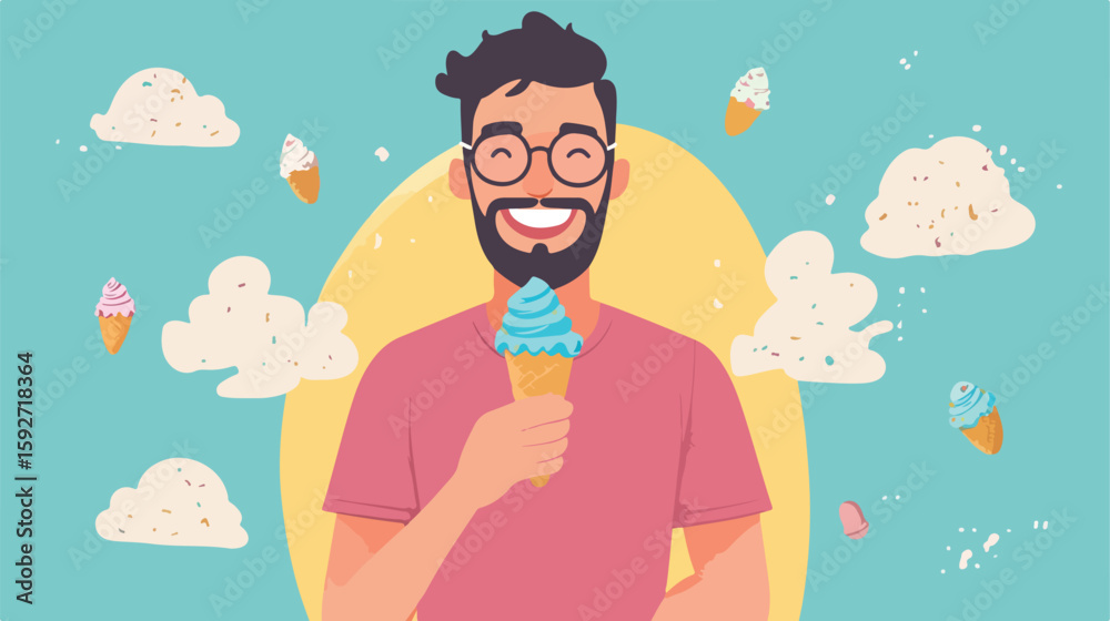 Fototapeta do Restauracji - Man Enjoying Ice Cream Flat Illustration #1592718364