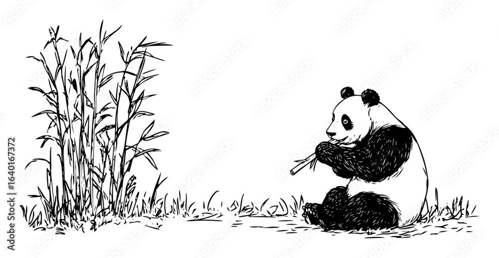 • giant panda eating bamboo – minimal vector wildlife drawing