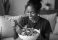 Fototapeta do Restauracji - Smiling woman eating fresh salad #1640192485