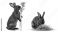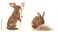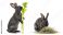 • Two Grey Rabbits: One Eating Celery, One Eating Hay, Isolated on White Background