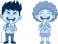 Fototapeta do Restauracji - Happy kids eating bananas, boy and girl holding fruit, healthy snack illustration, cartoon... #1718764117