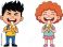 • Happy kids eating bananas, boy and girl holding fruit, healthy snack illustration, cartoon children smiling, nutrition education, school lunch concept, lifestyle