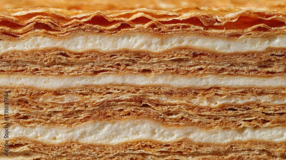 Fototapeta do Restauracji - Close-up view of delicate layered mille-feuille pastry with creamy filling. #1731607744