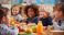 Fototapeta do Restauracji - Happy Children Sharing Lunch at Preschool Table #1745406601