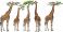 • Giraffe family eating leaves illustration, African wildlife art, tall savanna animals, safari nature drawing, wild giraffes artwork design.