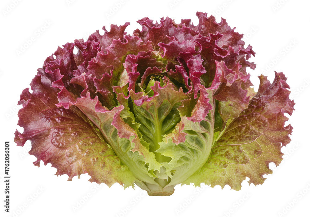 • Fresh red leaf lettuce isolated on a clean backdrop, vibrant salad ingredient for healthy eating and culinary use PNG