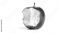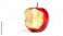 • Red, partially eaten apple with a bite mark, resting on a white surface with a soft shadow