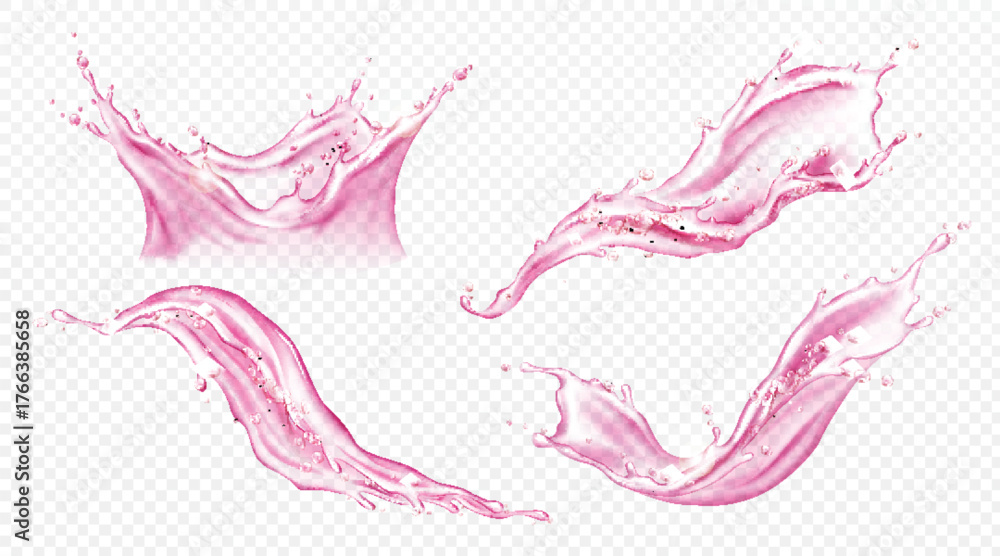 • Dynamic pink liquid splashes and waves isolated on transparent background