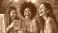 • Three diverse women laugh loudly at paint, sip event. They have colorful paint on faces, clothes. Friends enjoy art therapy, drinks, creative time together. Happy girls socialize, create art.