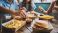 Fototapeta do Restauracji - Friends enjoying burgers and fries at a casual restaurant table #1790946564