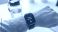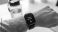 • Smartwatch screen displaying Time to Hydrate notification reminder on wrist with water bottle background