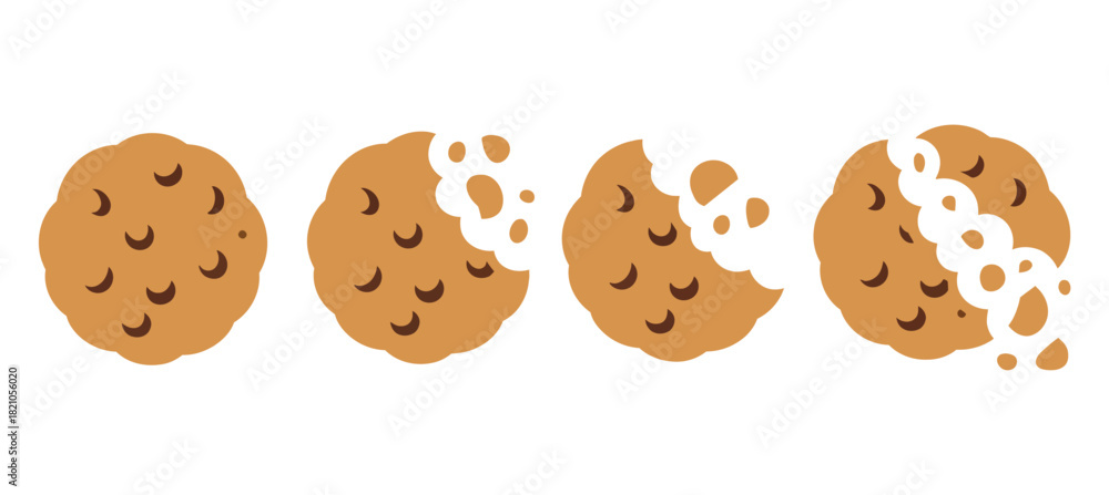 • A sequence of four cookies shows the progression from whole to partially eaten and then crumbling.