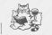 Fototapeta do Restauracji - Cat reading book with wine glass doodle vector illustration #1843322087