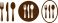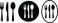 • A collection of three stylized icons representing cutlery with fork, knife, and spoon silhouettes
