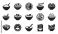 • Collection of black food bowl icons showing various meals like noodles, salad, rice, soup, and breakfast in a simple minimalist glyph style for restaurant menus and apps