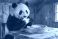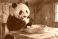 Fototapeta do Restauracji - Panda bear eating honey and cheese cake #1866669928