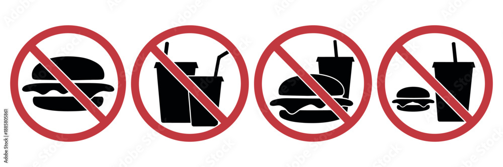 • No Food or Drink Sign Vector Featuring Prohibition Symbols, Labels, and Stickers