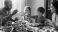 Fototapeta do Restauracji - Diverse family shares wholesome, abundant meal around a sunlit wooden table #1887266168