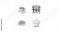 • Vector Illustration Set of Four Cafe and Bakery Icons Featuring a Steaming Cup of Coffee with a Spoon, a Professional Espresso Machine, a Fresh Croissant on a Plate, and a White Chef's Hat.