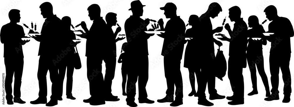 Fototapeta do Restauracji - Diverse group of people eating at a buffet event silhouette #1904814878