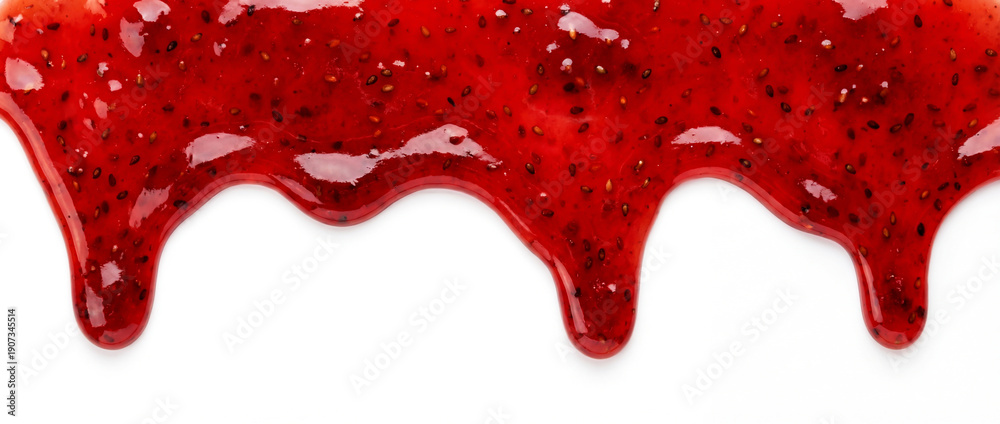 Fototapeta do Restauracji - Strawberry juice with seeds dripping on a white background #1907345514