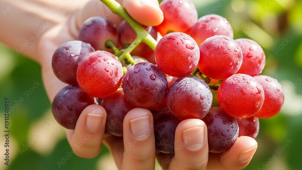 Fototapeta do Restauracji - Fresh grapes in a hand outdoors. #1911246967