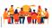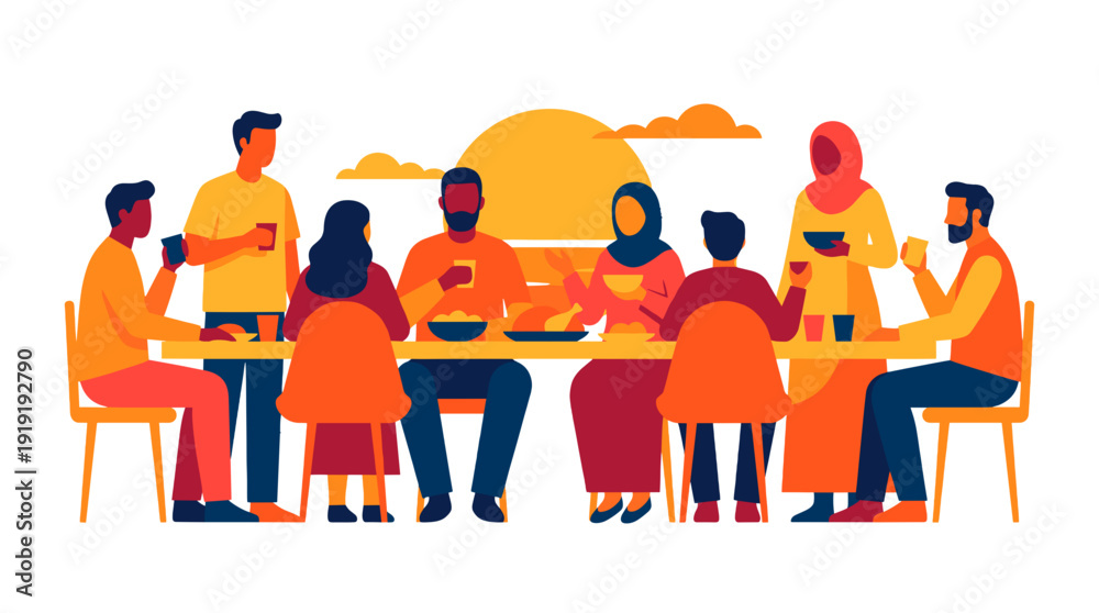 Fototapeta do Restauracji - A group of people sitting around a table enjoy their meals together #1919192790