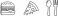• Outline burger, pizza slice, and spoon and fork icons for food and restaurant themes
