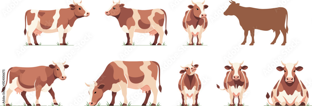 Fototapeta do Restauracji - Beef and Dairy Cow Set in Various Poses Vector #1924006675