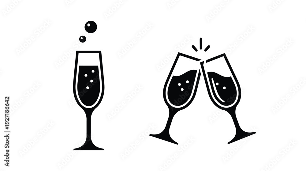 Fototapeta do Restauracji - Celebrating with champagne two glasses toasting in black silhouette #1927186642