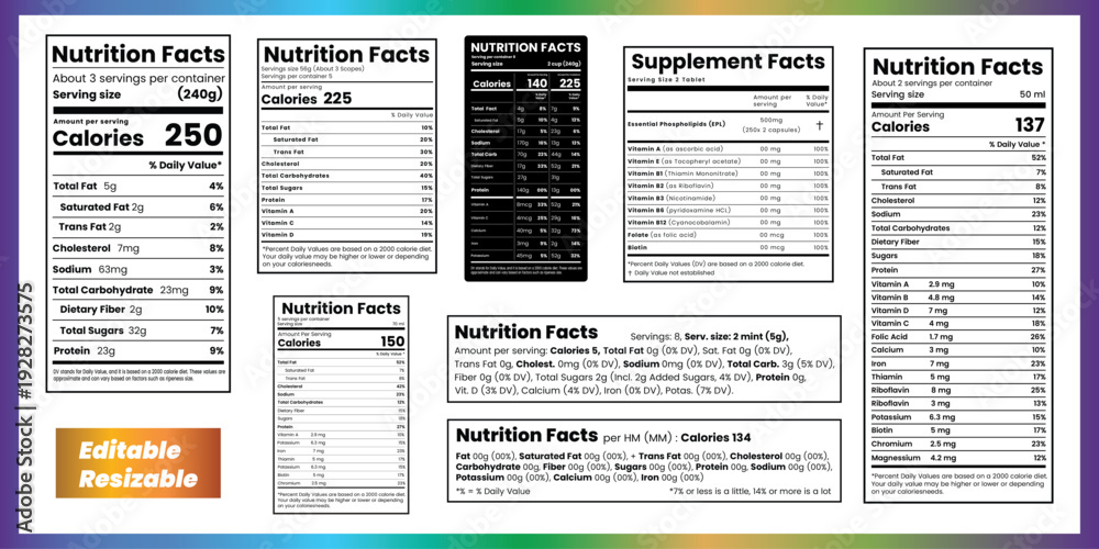Fototapeta do Restauracji - Nutrition facts, Supplement facts, Vitamin label, nutrition facts template, Editable nutrition... #1928273575