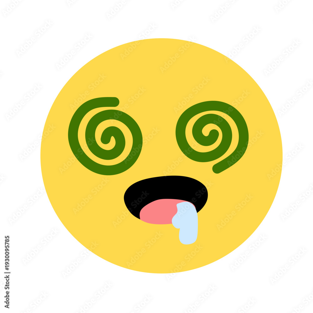 • Dizzy face emoji with spiral eyes and drooling mouth, representing confusion or intoxication.